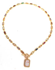Chasing Rainbow Baguettes - Diamond Emerald Toggle is stunning at the a glance! This gorgeous chain made of stunning rainbow diamonds gleams from every angel; finished with an oversized diamond emerald cut diamond.