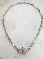Classic Silver Diamond Clasp is stunning at the a glance! This gorgeous textured chain is finished with a stunning oversized diamond clasp that gleams from every angel!