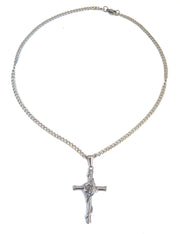 Silver Rosy Cross will have you feeling blessed all day! Hanging on a delicate chain It’s eye catching diamonds will have everyone's eye on you! Feel blessed with our precious Cross necklace!