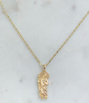 Follow Faith- Saint Jude hangs on a chic delicate Gold Filled chain. This unique chain gives this piece that extra sparkle. This delicate pendant with diamonds circling the rim, allows for our Saint Jude to really beam!